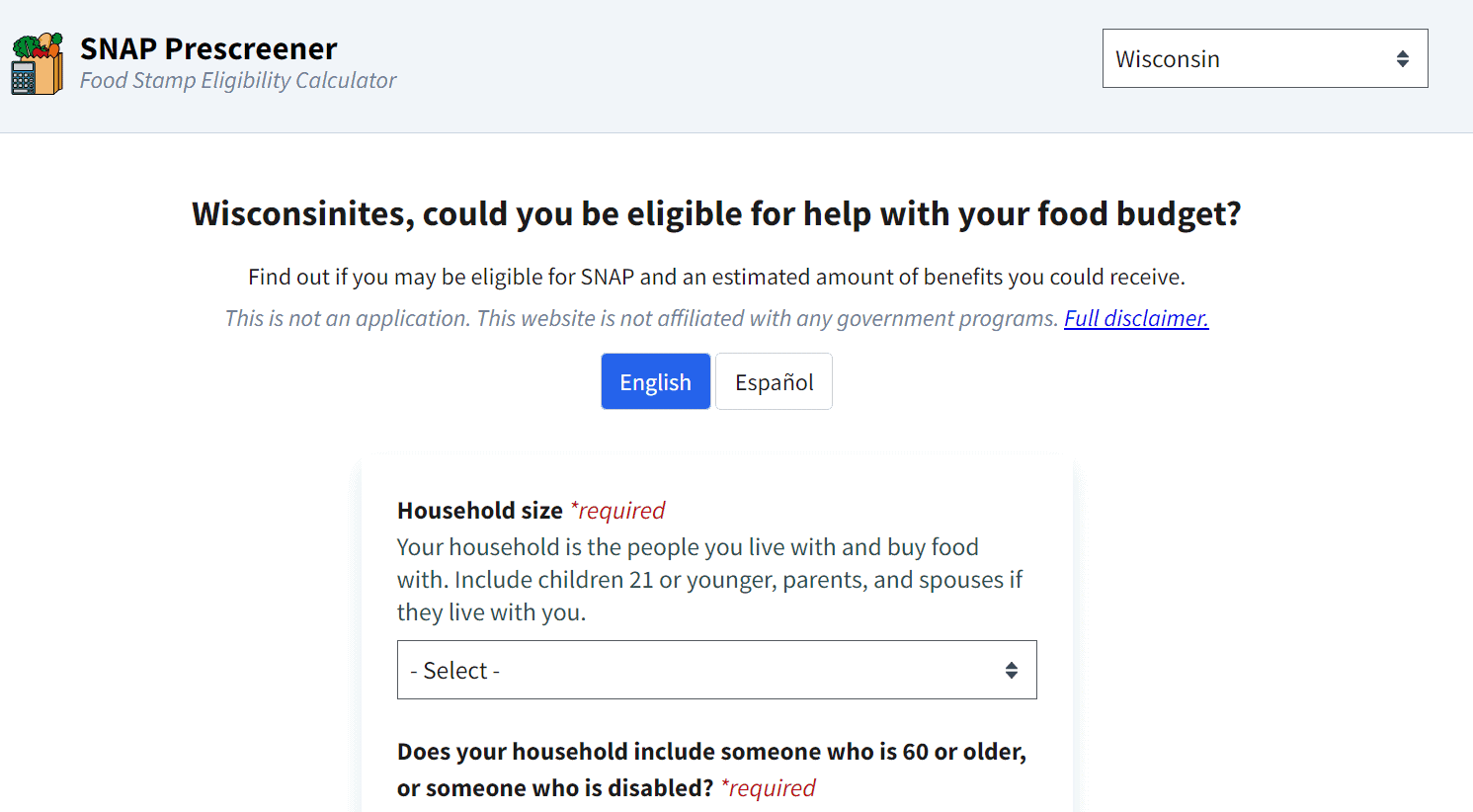* = Field is required. (adsbygoogle = window.adsbygoogle || []).push({}); If you are struggling to afford food, then applying for Georgia food stamp benefits could provide your household with some much-needed relief. Income information such as pay stubs from a job, child support or any other sources. WebSNAP Eligibility Calculator. $6, 112. Learn More, Unemployment vs. Paycheck Protection Program, Food Stamps for Seniors and Disabled Individuals. Most people will need to fit within both the gross and net income guidelines in order to be eligible. This means countable resources, like funds in bank accounts. The first test you must meet is the gross monthly income test. WebThe amount of SNAP a household receives depends on the number of people in the SNAP household and the amount of their net income. SNAP Eligibility Calculator There are people exempt from the employment requirements. WebTo see if you may be eligible for benefits, enter information below. Student eligibility. The Food Assistance program (or SNAP) serves low-income households that earning at or below 130% of the Federal Poverty Level. One of the most basic food stamp qualifications in Texas relates to the fact that all applicants must be U.S. citizens or legal residents. The second exception is elderly or disabled individuals that are unable to purchase and prepare their meals independently and live with others that do. To figure out your net income, you have to figure out which allowable deductions apply to your situations and deduct them from your gross income. Calculator Does your family need help with food, cash assistance, child care, medical benefits or long-term care? The amount is $0.00 per month. It is the Wisconsin Food Stamp Calculator is an instrument you can utilize to determine whether you could be eligible for benefits from SNAP in Wisconsin. WebCalFresh (formerly known as Food Stamps) is an entitlement program that provides monthly benefits to assist low-income households in purchasing the food they need to maintain adequate nutritional levels. WebThe Supplemental Nutrition Assistance Program (SNAP) helps Pennsylvanians buy food. Program Lump Sum Calculator; Part-time, Seasonal, and Temporary Employees (PST) Savings Plus - 401(k) / 457 Plans; Savings Plus Educational Workshops & Webinars; $6, 112. The table below shows the maximum gross and net monthly income based on family size for SNAP eligibility. For households subject to work requirements, excludes combined value of vehicles up to $8500. The Georgia Food Stamp Calculator tells you exactly how much you will receive in monthly benefits. WebThe first step is finding out if youre eligible for SNAP benefits, and it only takes 2 minutes! WebA person with a disability (a child, your spouse, a parent, or yourself). Net income, or household income after deductions are applied, must be at or below the poverty line. Student eligibility. Benefits cannot be used to buy alcohol, tobacco, medicine, hot food, food meant to be eaten in the store, or any non-food items. As long as you continue to meet the eligibility requirements for SNAP, there is no limit to how long you can receive benefits. The Supplemental Nutrition Assistance Program (SNAP), also known as food stamps provides monthly cash benefits to eligible households in Georgia. This is important because it allows you to determine if food assistance will make a difference for your household. WebProtect your SNAP benefits from hackers and scammers! The Georgia Food Stamp Calculator will help determine if food assistance will make a significant difference for your household. Maximum Monthly Income Limits Other Rules This example from the Center on Budget and Policy Priorities (CBPP) will show you how much a family of three is expected to receive. Special Rules for the Elderly or Disabled Food Stamp Calculator In this article, we will cover: Georgia SNAP Benefits Overview; Georgia Food Stamp Calculator for 2023; GA SNAP Qualifications & Eligibility Guidelines; Georgia Food Stamp Eligibility Pre-Screening Tool WebThe calculator will automatically include a standard deduction of $166.81. How much Food Stamps will I get in Georgia? Apply for Georgia Food Stamps, Gateway Account Login and more. Lawfully admitted for permanent residence - These are people with green cards, Asylees These are people granted asylum in the US under the Immigration and Nationality Act (INA). Individuals and households that qualify for Georgia food stamps meet the SNAP income guidelines, or have someone in the household that is elderly or disabled. Food Stamps Eligibility Food stamp eligibility calculator is available in Google browser. Contact 211info to find out if you may be eligible for SNAP. This is not required to access our forms. The information collected will be used to determine if you are likely to receive SNAP benefits. Virginians, could you be eligible for help with your food budget? However, the average is $175, which translates to $5.83 a day on average. Even if there are ineligible non-citizens living in a household, the rest of the household may still be eligible if they meet the eligibility requirements. Student eligibility. This is not required to access our forms. The Louisiana food stamp calculator is a tool that can help you determine if you qualify for food stamps in the state. At no point will you lose money that has already been transferred to your EBT card. Obtain Domestic Violence Assistance Domestic violence programs located throughout Illinois provide safety assistance to victims of domestic violence. Do I qualify? SNAP Eligibility Calculator - 50 State Food Stamp Calculator Income requirements beginning October 1, 2022: Households with incomes within these guidelines receive this Temporary Assistance for Needy Families (TANF)-funded brochure, Help for Pennsylvanians in Need. SNAP cannot be used to pay for any type of alcohol or tobacco products, vitamins and medicines, hot foods, and foods that will be eaten in 