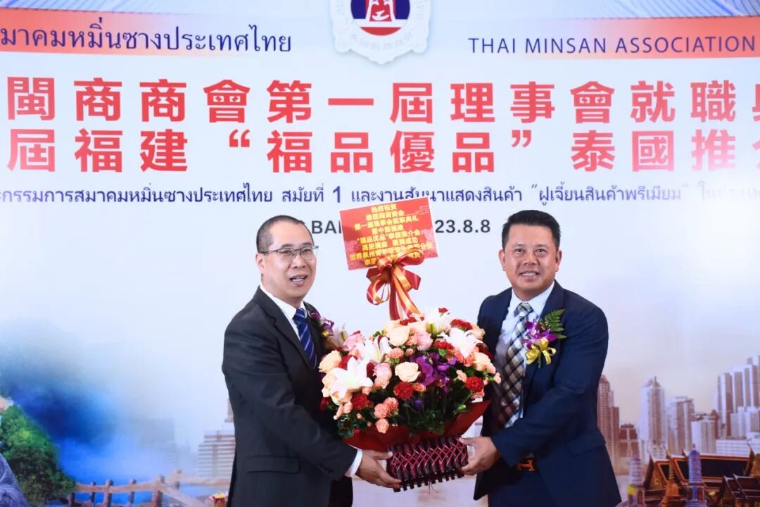 8月8日, 泰国温州商会会长郑炳克,名誉顾问杨艳峰,会务顾问李建辉,会务顾问陈敏 参加由泰国闽商商会主办的首届福建“福品优品”推介会,来自美国、越南、马来西亚、老挝等40多个国家的侨商、商会代表、中国各省份企业代表、泰国本土最具影响力的23家商场代表等300余人齐聚一堂,共商合作,共谋发展,助力福建产品走进泰国。