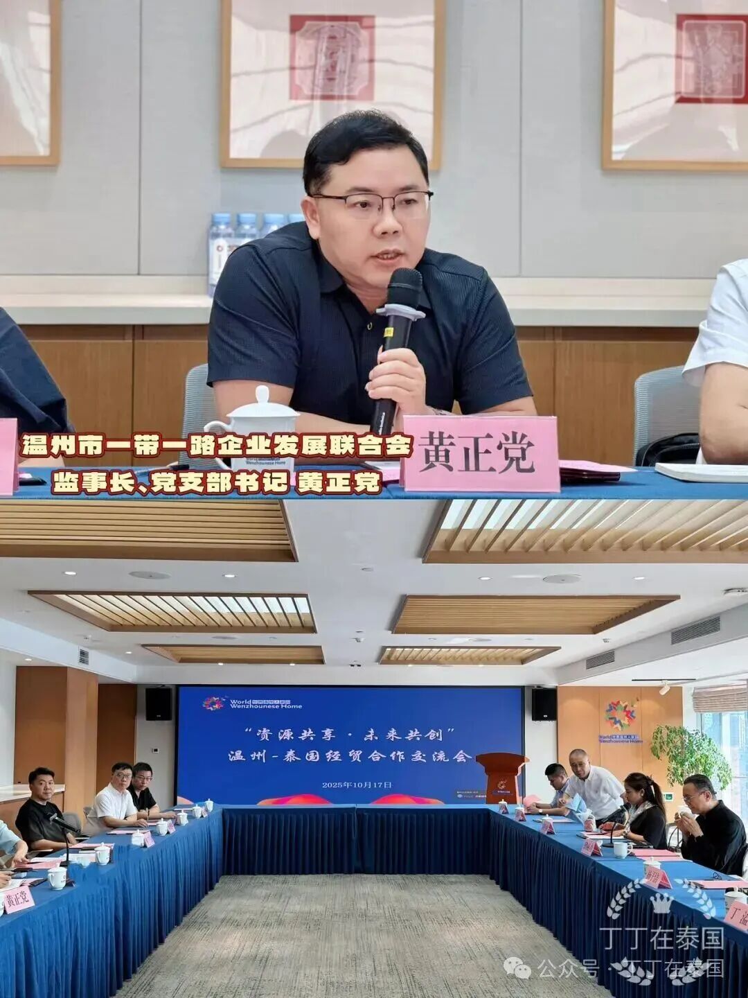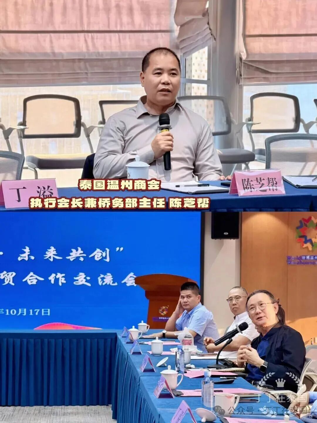 2025年10月17日下午,以“资源共享·未来共创”为主题的温州——泰国经贸合作交流会在温州市世界温州人会客厅成功举行。本次活动由温州市一带一路企业发展联合会主办,泰中商务委员会协办,泰国温州商会受邀出席并参与交流。本次会议聚焦温州与泰国两地产业的优势互补与经贸合作,为双方企业搭建起务实沟通平台,助力共享发展机遇、共拓合作空间。