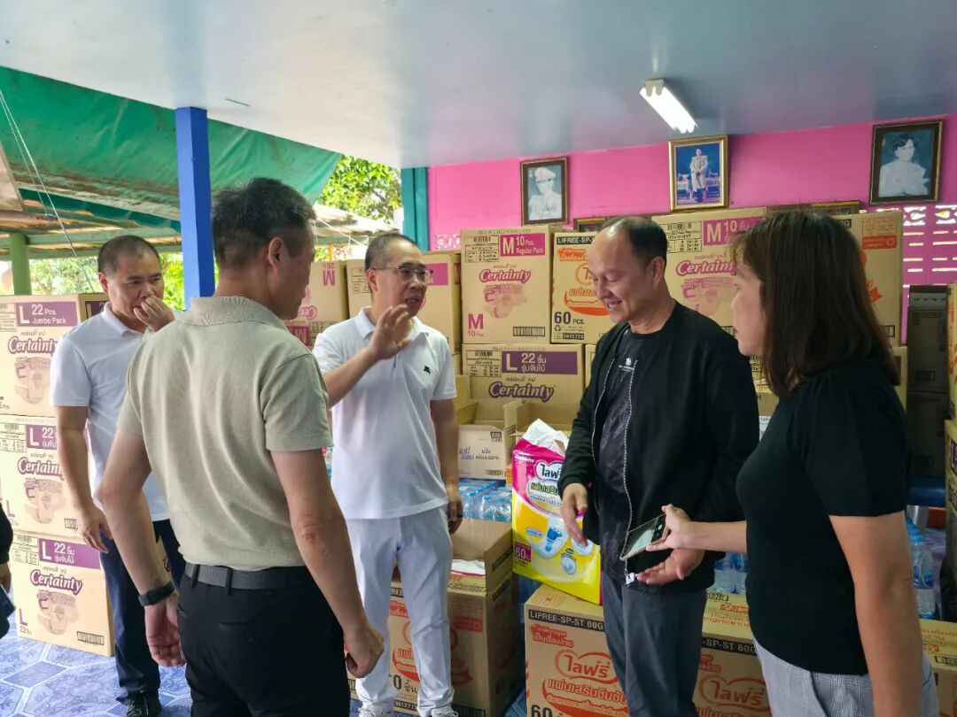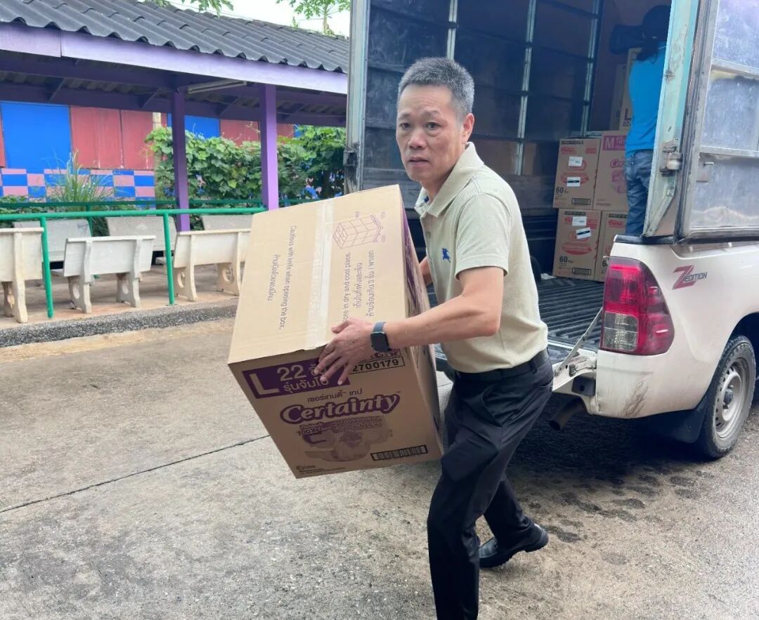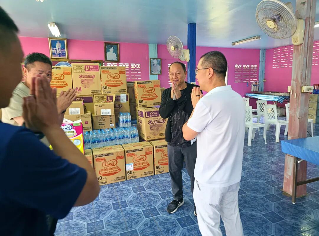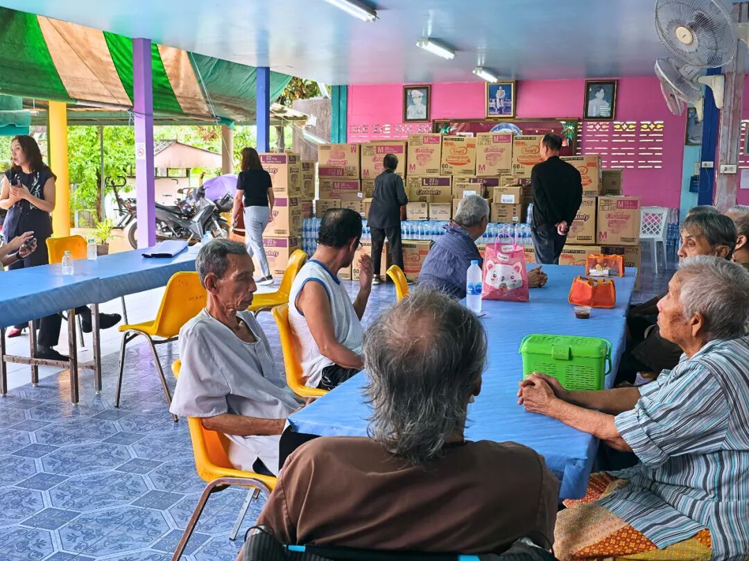 活动由常务副会长兼慈善部主任章圣利先生策划、统筹与落实。自活动确定以来,章主任便亲力亲为,不仅负责整体协调,更在活动前两天亲自走访当地市场采购所需物资。他细心挑选并购置了敬老院日常生活与护理必需品,包括成人纸尿裤(M号、L号)、大包装湿纸巾、护理垫、660毫升装晶露饮用水、牙膏、碘酒、长者专用维生素等,合计价值约120,000泰铢。所有物资均根据敬老院的实际需求准备,体现出细致入微的关怀与体贴。
