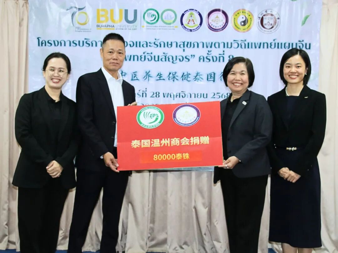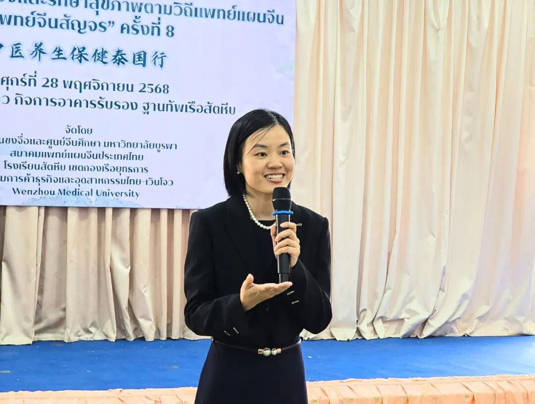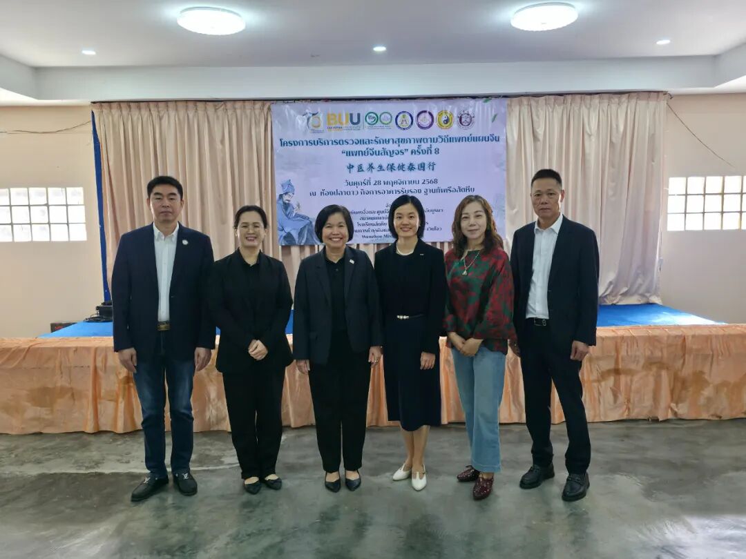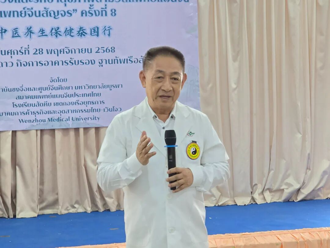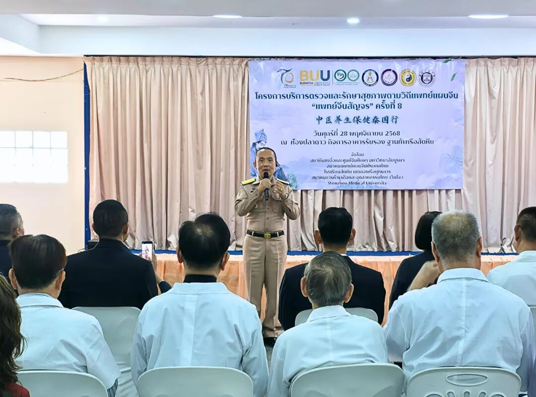 2025年11月28日,第八届“中医养生保健泰国行”义诊活动在泰国春武里府梭桃邑顺利举行。活动由泰国东方大学孔子学院联合泰国梭桃邑海军学校、泰国中医师总会、泰国温州商会与温州医科大学共同举办。今年的活动首次将服务对象延伸至海军社区,为军人、运动员及其家属提供中医诊疗与康复指导,取得良好反响。