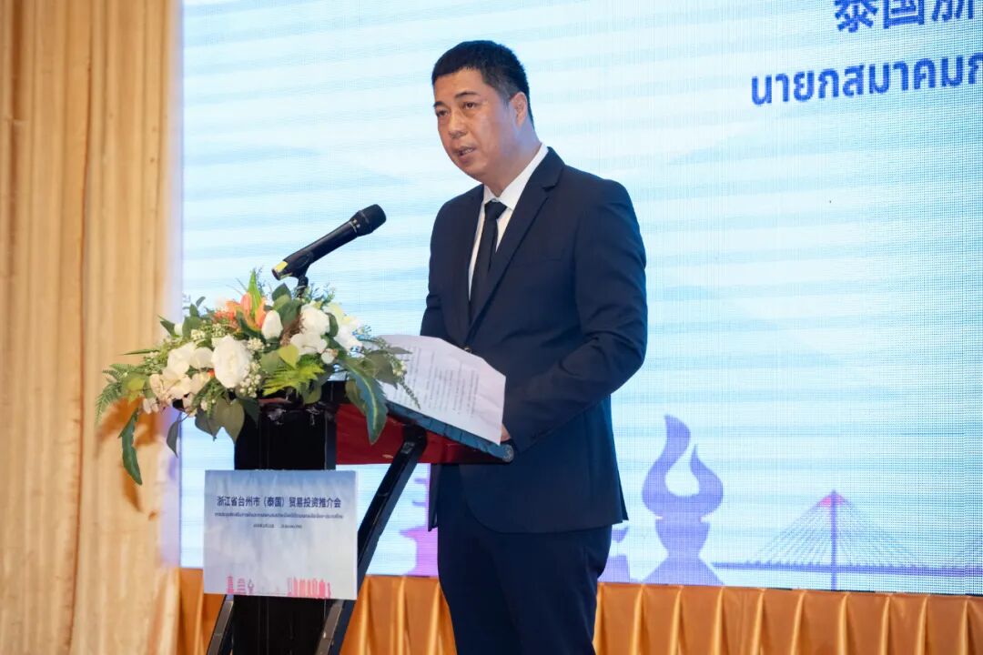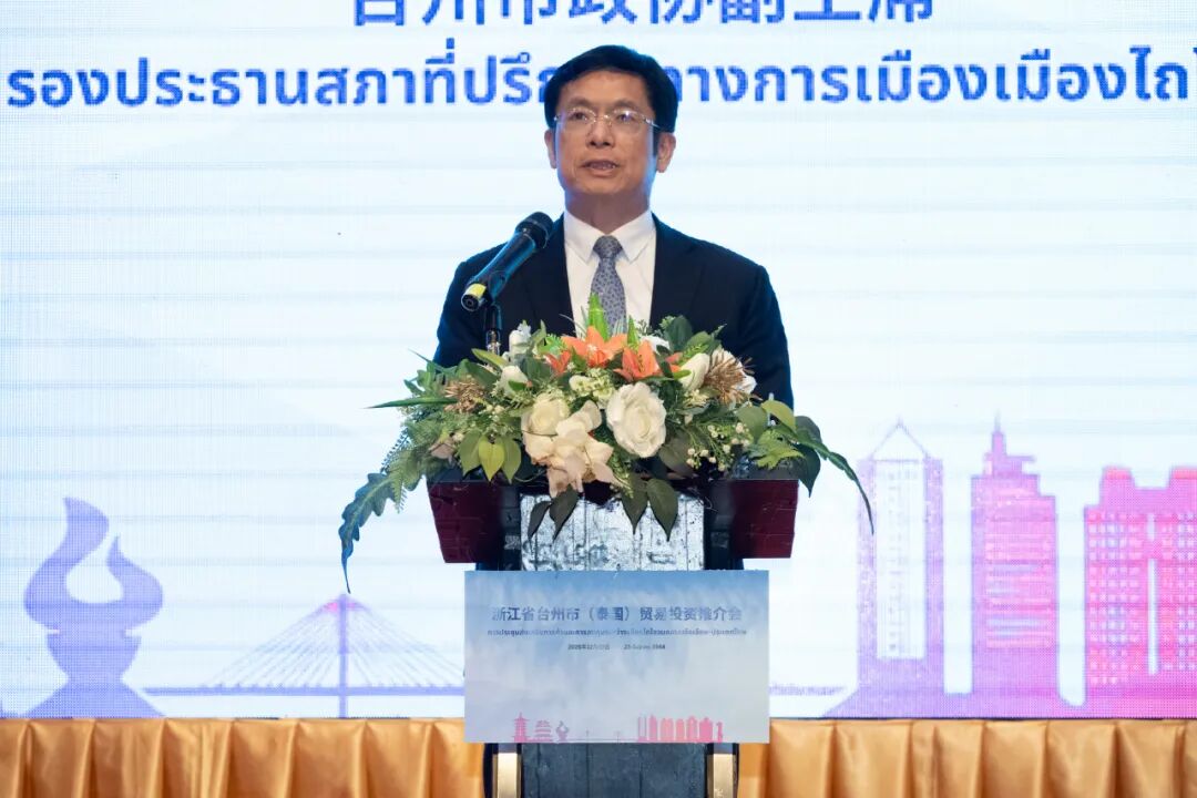 台州市政协副主席陈建勋在致辞中表示,台州是中国民营经济的重要发源地之一,产业体系完备、市场活力充沛,与泰国产业互补性强、合作空间广阔。希望借此推介会为契机,进一步深化台州与泰国在经贸往来、产业协作和投资交流等方面的务实合作,实现互利共赢、共同发展。