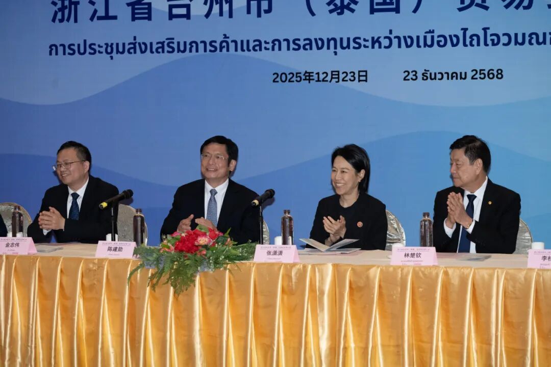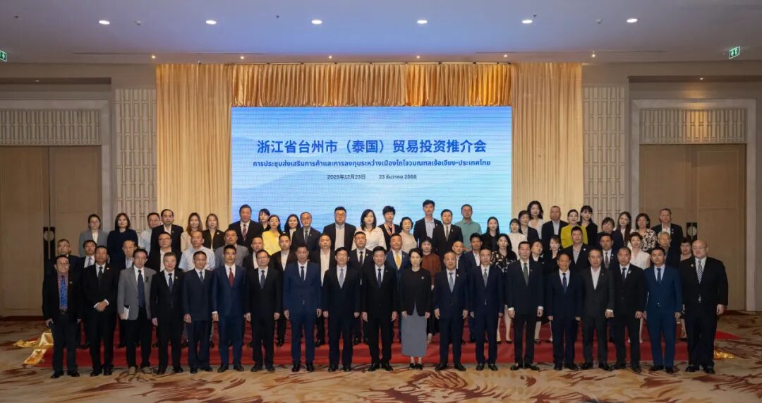 2025年12月23日,“浙江省台州市(泰国)贸易投资推介会”在泰国中华总商会大厦光华堂隆重举行。泰国温州商会应主办方邀请,组织代表出席本次活动,与中泰政商界、各协会及金融机构代表齐聚一堂,围绕贸易投资、产业合作等重点领域进行了深入交流,共同推动浙江台州与泰国的经贸合作。