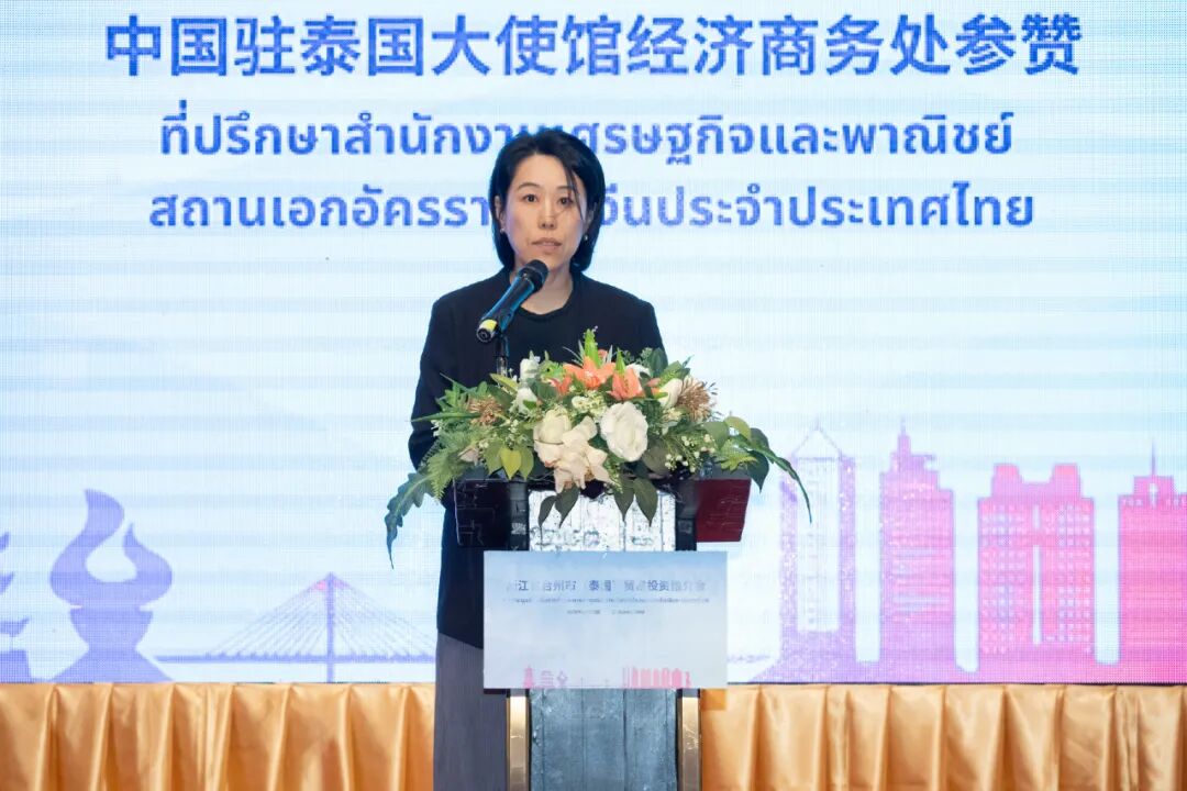 中国驻泰国大使馆经商处参赞张潇潇在致辞中表示,中泰是命运与共的友好邻邦,经贸合作始终是双边关系中最具活力的领域。今年适逢中泰建交50周年,两国关系发展迎来新的重要机遇。台州制造业基础雄厚,与泰国在产业互补、产能合作和供应链协同等方面契合度高,期待通过本次推介会推动双方在贸易、投资及新兴领域的合作并取得更多务实成果。