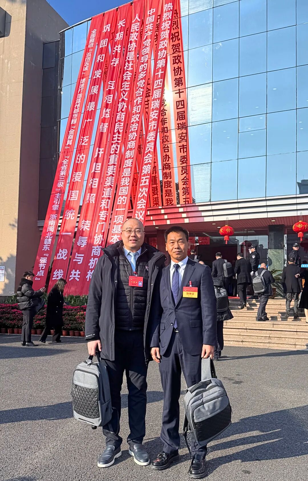2026年2月8日至11日,泰国温州商会常务副会长兼商务部主任黄志立、常务副会长兼对外联谊部主任陈尔东应邀出席瑞安市政协、人大会议,积极履行代表职责,参与相关议程讨论。