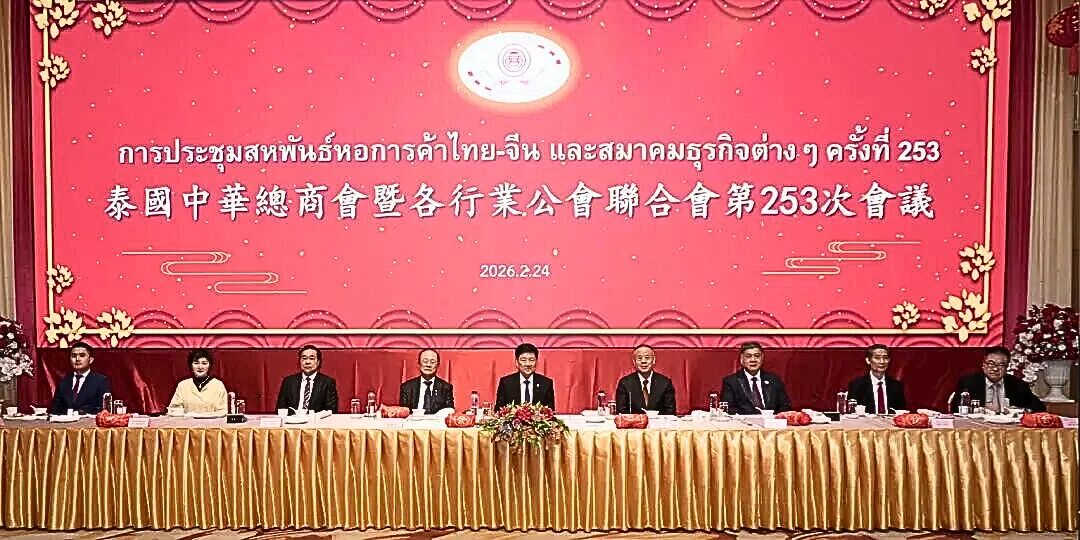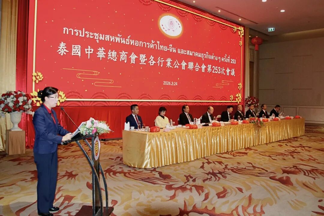 2026年2月24日上午10时,泰国中华总商会暨各行业公会联合会第253次会议在泰国中华总商会光华堂隆重举行。来自泰华各行业商协会代表齐聚一堂,共同研判经济发展形势,交流行业发展经验,探讨合作新机遇,为进一步推动泰中经贸合作与华商社群高质量发展达成共识、凝聚力量。