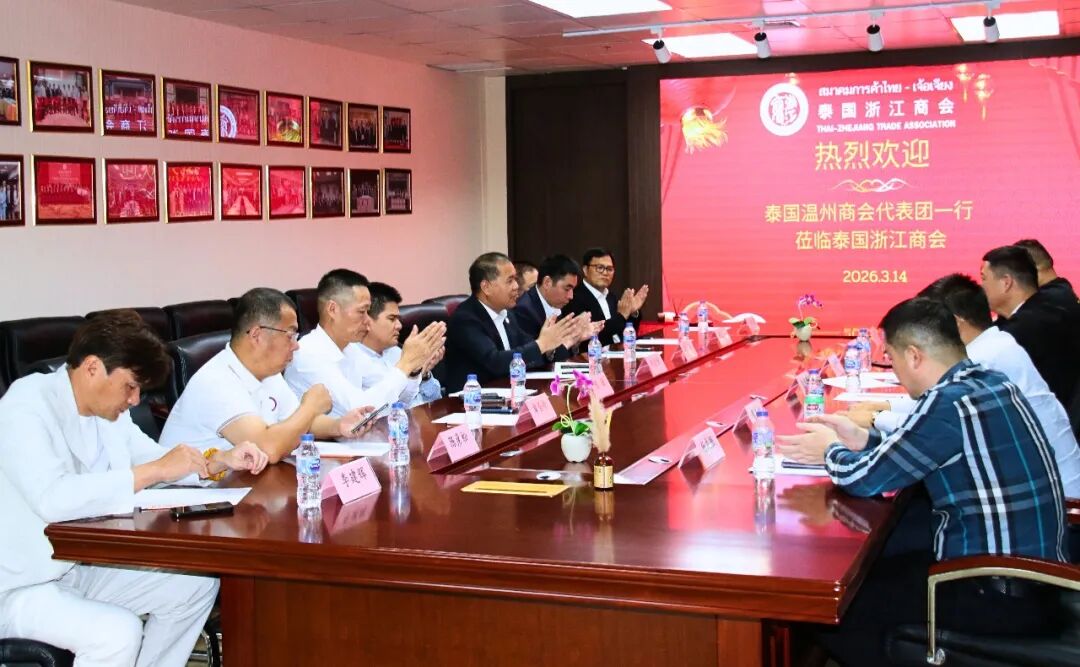 2026年3月14日15:30,泰国温州商会一行前往位于曼谷沙吞区的泰国浙江商会会所,开展友好拜访交流活动。此次活动旨在加强在泰浙籍社团之间的乡情联谊,促进资源对接与互动交流,进一步深化两会友谊与务实合作。