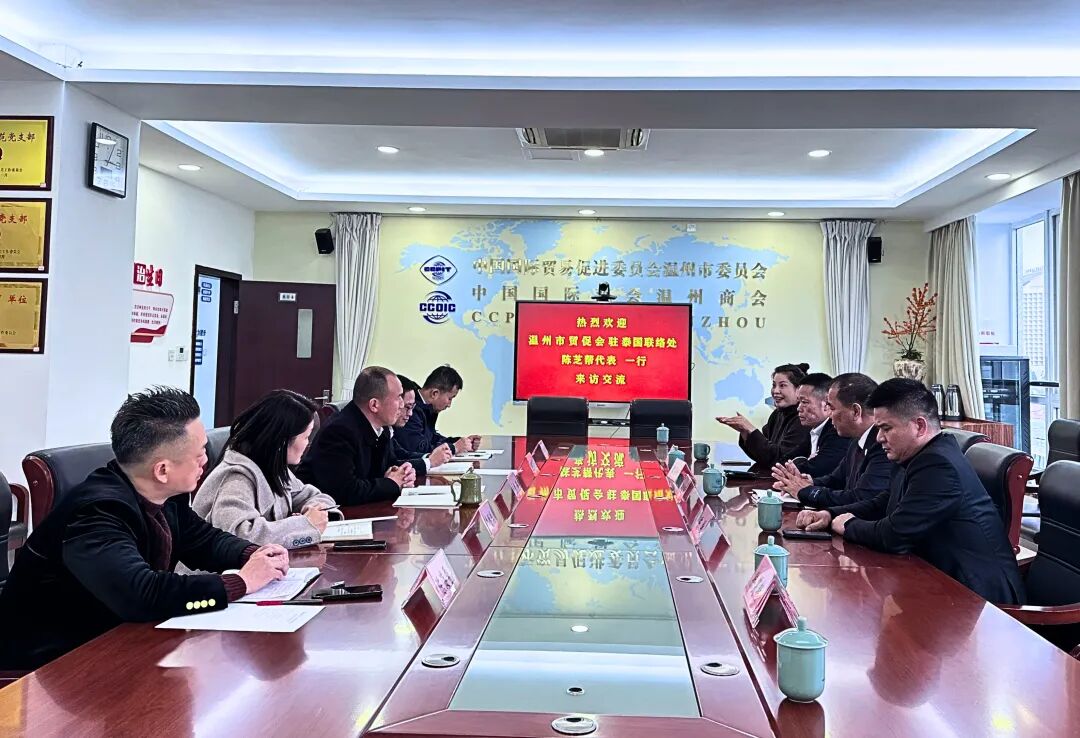 2025年12月31日下午14时,泰国温州商会一行前往中国国际贸易促进委员会温州市委员会进行拜访交流。此次活动旨在加强沟通联系,深化侨务与经贸领域的交流合作。